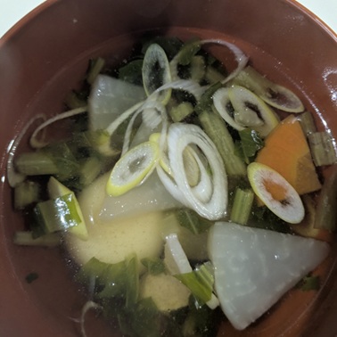 お味噌汁も豆乳いれると感じも変わって美味しいです。具材のさつまいももよく合いました。