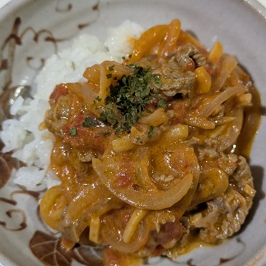 トマトが入ると酸味もあって、サッパリして夏場のカレーらしくとても美味しかったです。