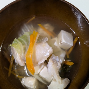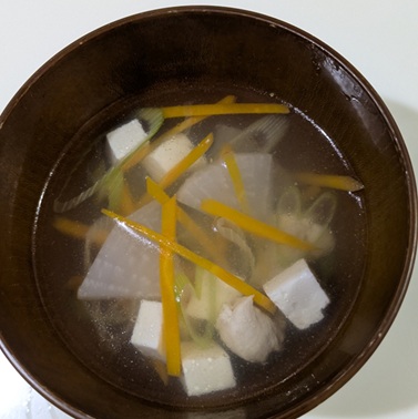 こういう白玉、お餅系は子供も喜んで食べてくれます。食べた応えも出てとてもよい汁物でした。