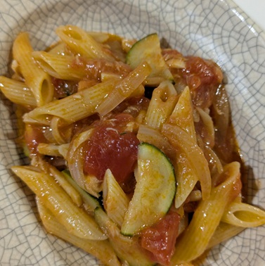 レシピにあったペンネを使った方で作りました。トマトの酸味や旨味がとても夏らしく、秋になる前に作れて良かったです。