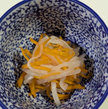 割干し大根が見つけられず、少し立派な切り干し大根があったので作りました。煮物のようにせず、甘酢で和えるだけなのでシャキシャキした食感も残ってとてもおいしかったです。