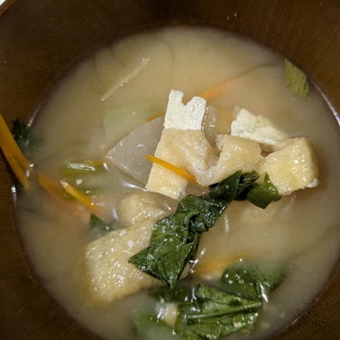 はま菜ちゃんたっぷり野菜の豆にゅうみそスープ | |