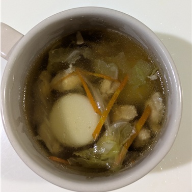 鶏肉も入ってダシが出てくれたのか、塩と顆粒のダシだけでもじんわりおいしかったです。