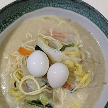 ちゃんぽんの麺というのがどうしても見つけられず、煮込み用のラーメンの麺で作りました。いろんな野菜の入ったスープが麺に含まれた感じにもなって普段のラーメンとはまた違ってとても美味しかったです。