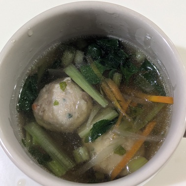 小松菜がシャキシャキして、肉だんごで食べ応えも出て、おいしいスープでした。子供もしっかり食べてくれました。