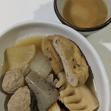 優しいダシなので、トロッとした甘い味噌だれを付けて食べると、また味が変わってとても美味しかったです。